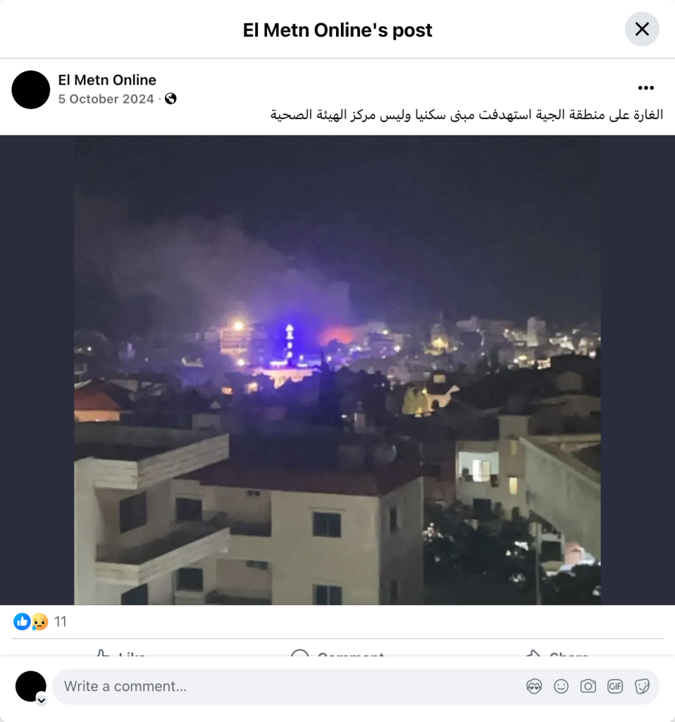 الغارة على منطقة الجية استهدفت مبنى سكنيا وليس مركز الهيئة الصحية