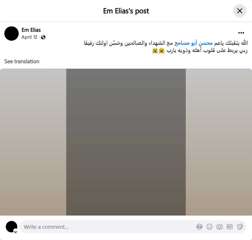 May God accept you, Uncle Mohsen Abu Musameh, with the martyrs and the righteous. What excellent companions they are!