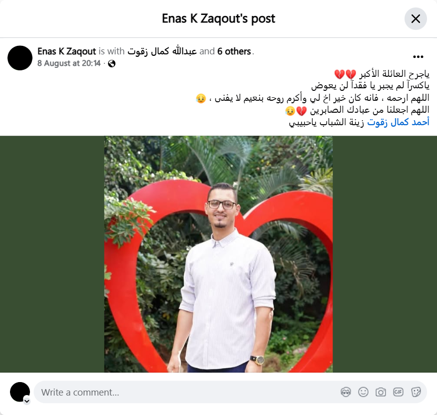 Ahmed Kamal Zaqout, the adornment of youth, my love