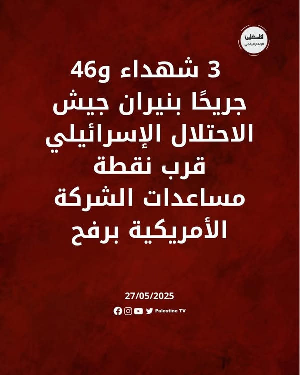 3 martyrs and 46 wounded by Israeli occupation army fire near the American company aid point in Rafah. All reactions: 11