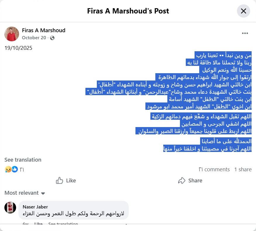 بنت خالتي الشهيدة دعاء محمد وشاح"عبدالرحمن" و أبنائها الشهداء "أطفال"