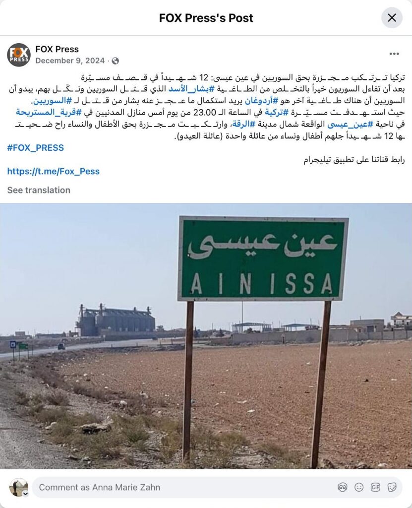 تركيا تـ ـرتـ ـكب مـ ـجـ ـزرة بحق السوريين في عين عيسى: 12 شـ ـهـ ـيداً في قـ ـصـ ـف مسـ ـيّرة