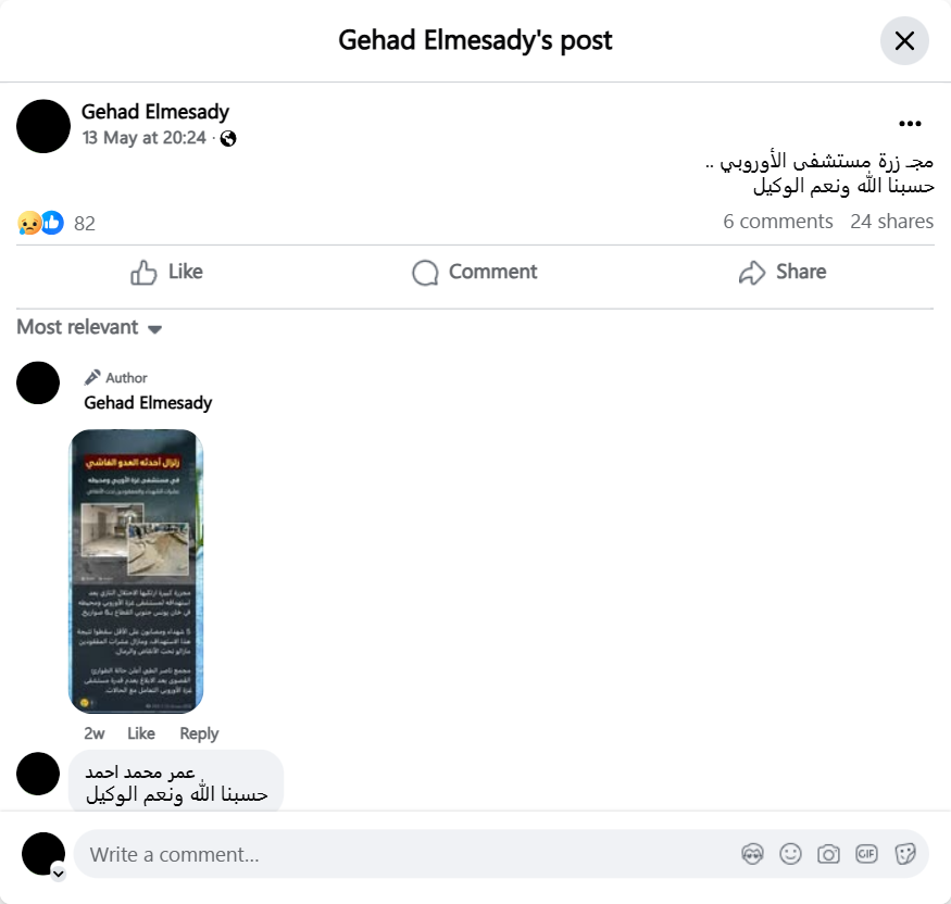 مجـ زرة مستشفى الأوروبي ..حسبنا الله ونعم الوكيل