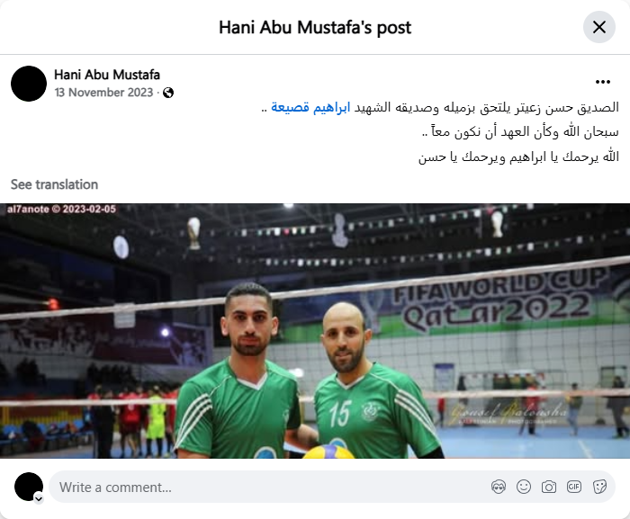 Friend Hassan Zaiter joins his colleague and friend, the martyr Ibrahim Qasi'a.