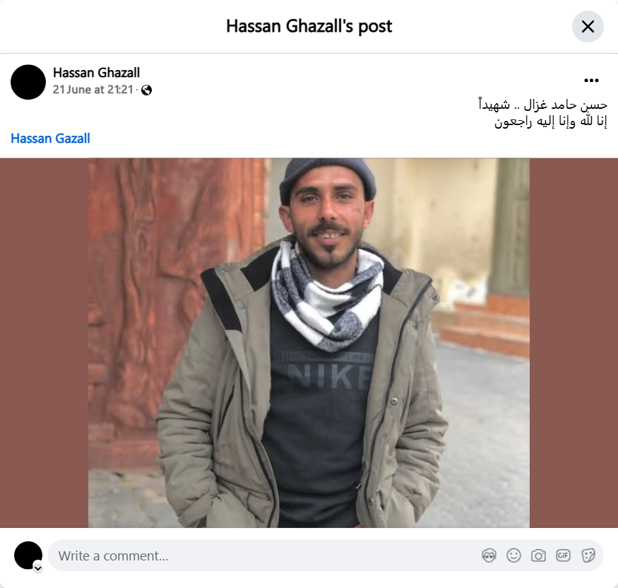 Hassan Hamed Gazall.. a martyr. To God we belong and to Him we shall return.