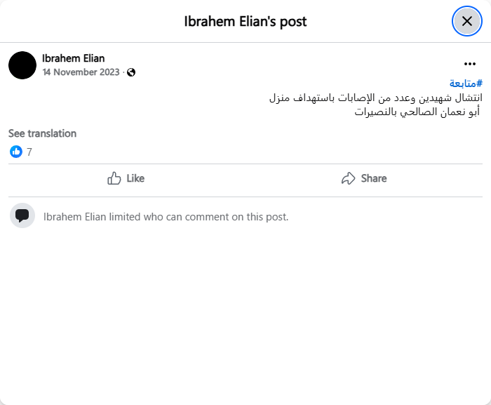 #Follow-up: Two martyrs and a number of injuries were recovered after Abu Naaman Al-Salihi's house was targeted in Al-Nuseirat.
