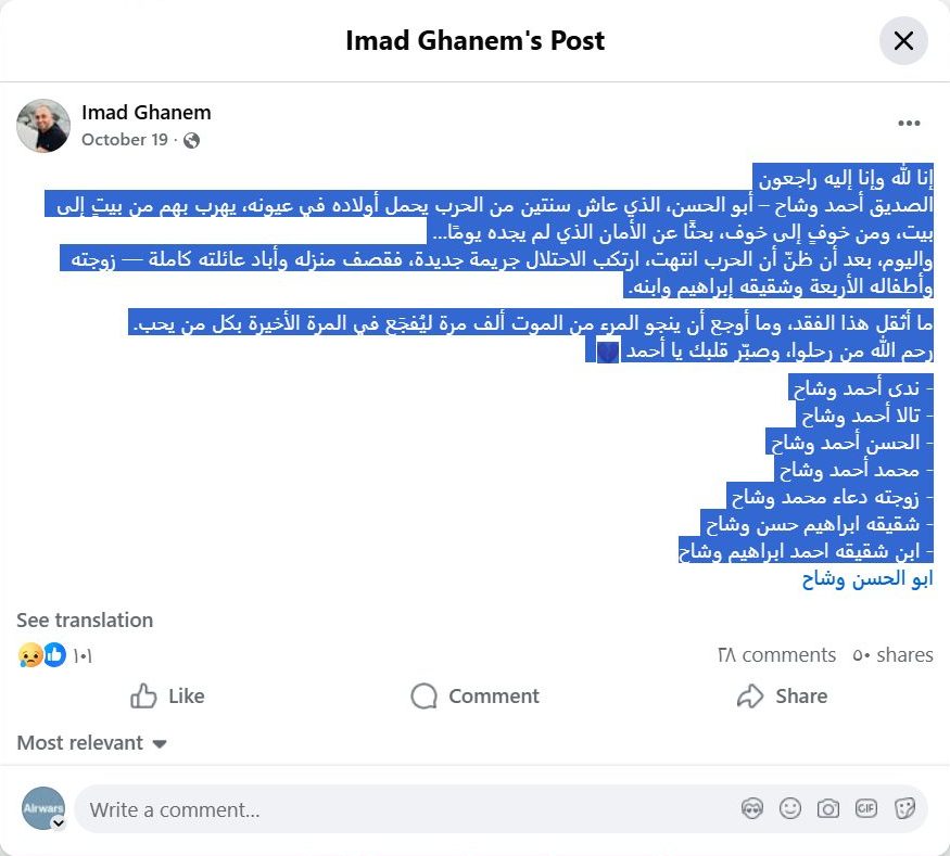Archive URL: https://airwars.org/source/www-facebook-com-imad-ghanem-pfbid02ytazdyvsqmq7y5mhetuddvsahprhpxao5ngeffwyhc8h7b46uqnnvccszqe95wwbl-2025-10-19-090000/