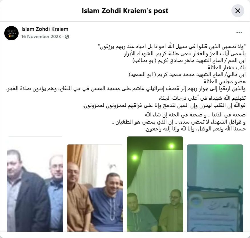 Archive URL: https://airwars.org/source/www-facebook-com-islam-zohdi-kraiem-pfbid02ppqsgbzvewvnt1py45huzcgyoen6xmaqbhimp6s5ed6rbkgee3r48qdiazikuuiml-2023-11-16-110000/