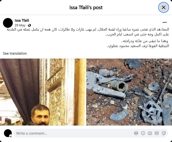 Nabatieh al-Fawqa mourns the passing of Mahmoud Atwi.