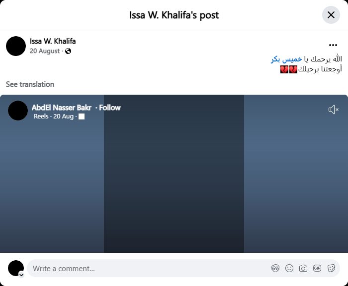 Archive URL: https://airwars.org/source/www-facebook-com-issa-w-khalifa-pfbid0ebzt7qnbwunc7fvq4mlxaqxmtoquoqmdhan36a1q5o92mysvoxpty7nym2myvmejl-2025-08-20-090000/