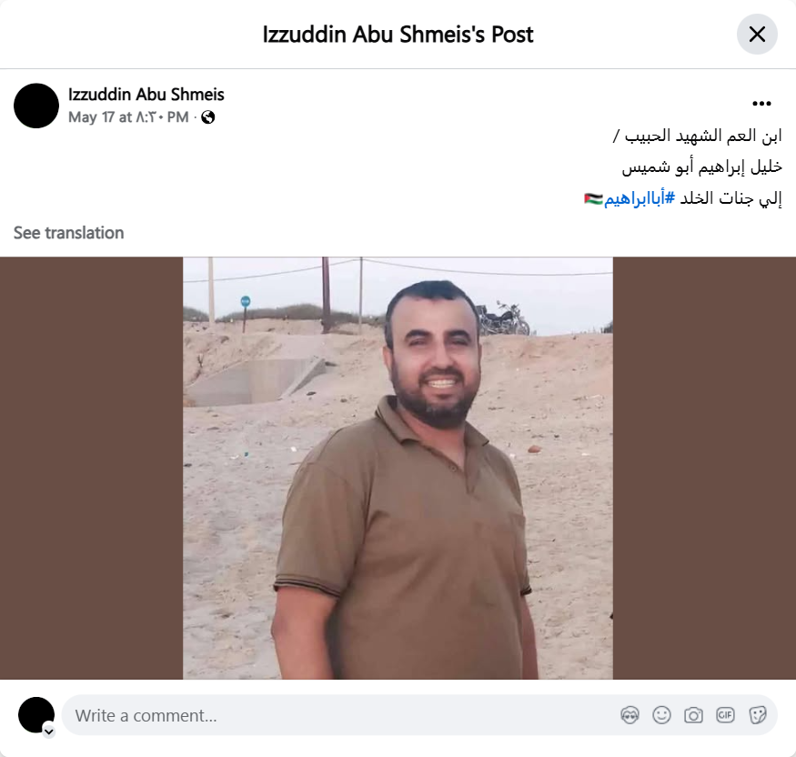 Archive URL: https://airwars.org/source/www-facebook-com-izzuddin-abu-shmeis-pfbid02x29bj1fl3eakakafwf3iimcoev6snexshdlsurhrrbztwkcp2cqhsar9djfwf8ykl-2025-05-17-090000/
