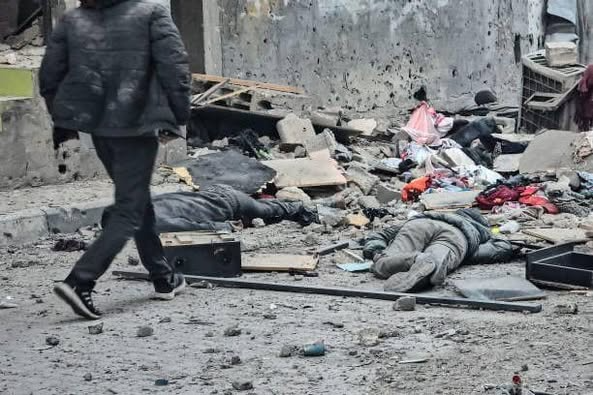 صور قاسية من محيط مستشفى كمال عدوان شمال غزة؛ الشهداء في الطرقات جراء مجازر الاحتلال المستمرة..Horrific images from around Kamal Adwan Hospital in northern Gaza; Martyrs on the streets due to the ongoing occupation massacre .Gambaran buruk dari sekitar Rumah Sakit Kamal Adwan di Gaza utara; Para martir di jalanan akibat pembantaian pendudukan yang sedang berlangsung