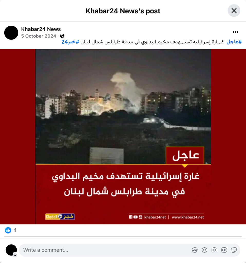 #Urgent | An Israeli raid targets the Baddawi camp in the city of Tripoli, northern Lebanon. #Khabar24