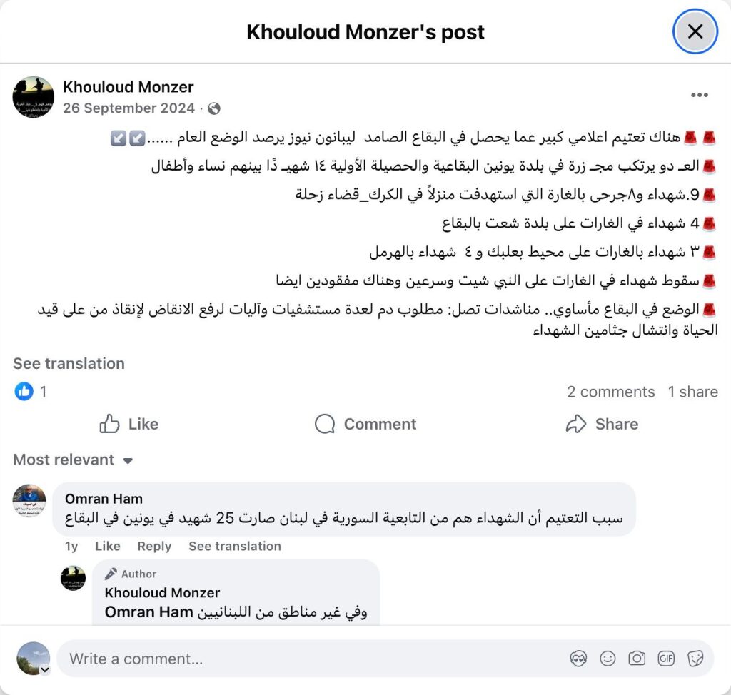 There is a significant media blackout regarding what is happening in the steadfast Bekaa Valley. Lebanon News is monitoring the general situation...