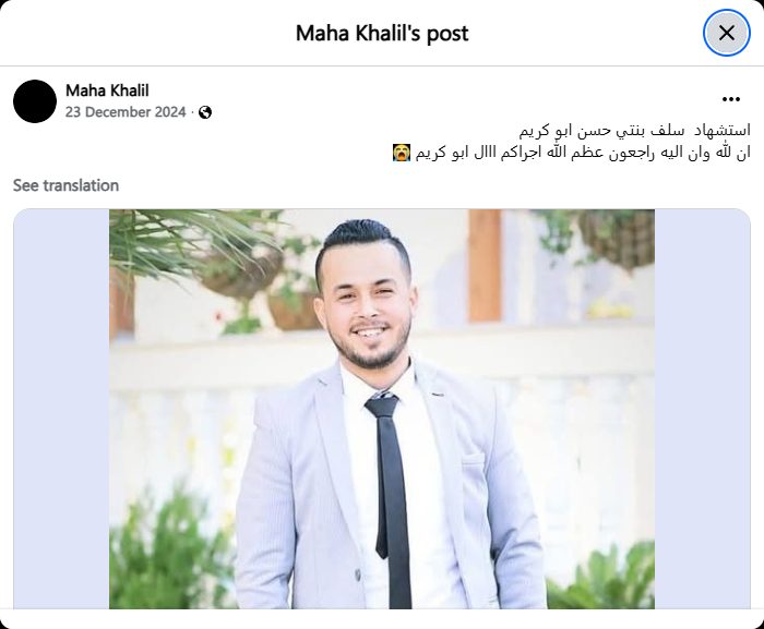 Martyrdom of my daughter Hassan Abu Karim's father-in-law