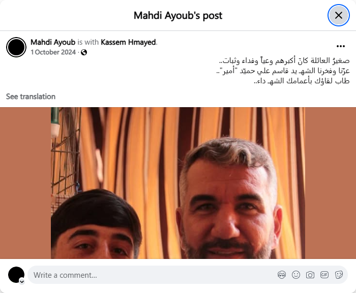 The youngest of the family was the oldest in awareness, sacrifice and steadfastness.. Our pride and glory is the martyr Qasim Ali Hamid "Amir".. May your meeting with your martyred uncles be pleasant..