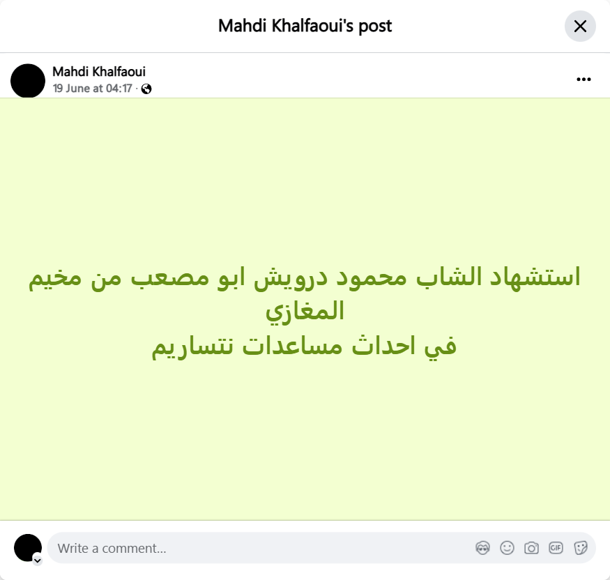 استشهاد الشاب محمود درويش ابو مصعب من مخيم المغازي في احداث مساعدات نتساريماستشهاد الشاب محمود درويش ابو مصعب من مخيم المغازي في احداث مساعدات نتساريم