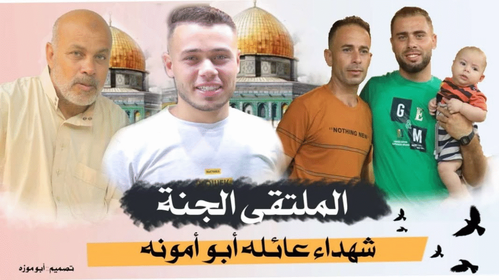 مجزرة عائلة ابو امونة الشهيد بشير ابو امونة وزوجته الشهيدة بدور ابو امونةوابنهم الشهيد محمود بشير ابو امونة وابنهم الشهيد منير بشير ابو امونة والشهيدة آية بشير ابو امونةوالشهيد ملك بشير ابو امونةالطفل جود صائب ابوامونة الطفلة زينة صائب ابوامونةالطفلة بيسان صائب ابوامونةوارتقاء ابنهم بلال بشير ابوامونة