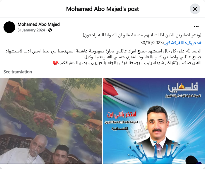 Praise be to God in any case. All members of my family were martyred in a brutal Zionist raid that targeted us in our home while we were safe. It led to the martyrdom of my entire family and my injury with a broken spine. God is sufficient for us, and He is the best Disposer of affairs.