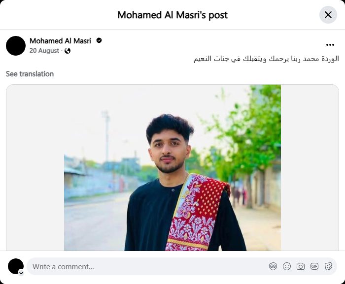 https://www.facebook.com/mohamed.al.masri.136373/posts/pfbid0xprCVDraJ34qeXdJvf7MuBk5d3fLLmRpMr7fmjukBfmEQthGrY84zdQcji218CW1l