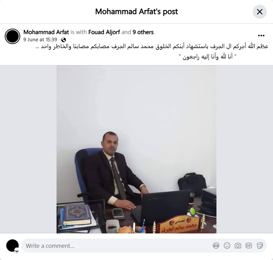 Archive URL: https://airwars.org/source/www-facebook-com-mohammad-arfat-is-with-fouad-aljorf-and-9-others-pfbid02xtx9n61lhtsd43yqngncevqerspfvlrq2xaakhlnrrfgzqkjvbrpjdbqpyhnxlzzl-2025-06-09-133900/