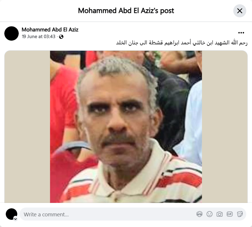 رحم الله الشهيد ابن خالتي أحمد ابراهيم قشطة الى جنان الخلد
