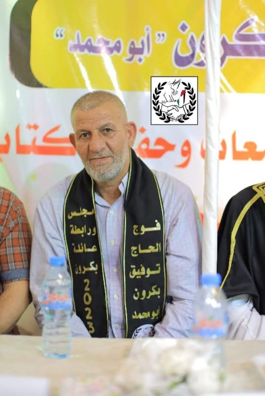 In the name of God, the Most Gracious, the Most Merciful. (And never think of those who are killed in the way of Allah as dead. Rather, they are alive with their Lord, receiving provision.) On behalf of myself and my family, I offer my condolences to the Bakroun family for the martyrdom of: Hajj Uncle Rabhi Bakroun and Nidal, the daughter of the martyred child, Olina Nizar Bakroun, after targeting a residential building on Al-Thawra Street, west of Gaza. May God have mercy on them and grant him a place in His spacious gardens. May God have mercy on you, Uncle Abu Nidal. You have joined my uncle Hani and your daughter Umm Yazan. May God have mercy on you all and make your abode in Paradise.