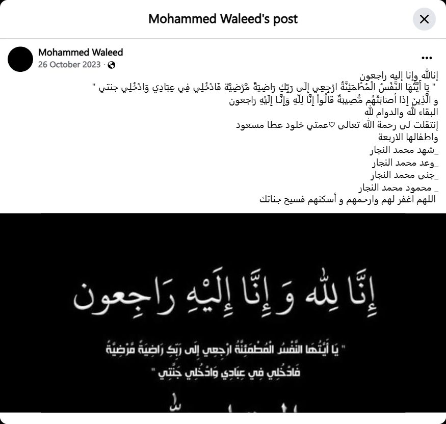 My aunt Kholoud Atta Masoud and her four children have passed away.