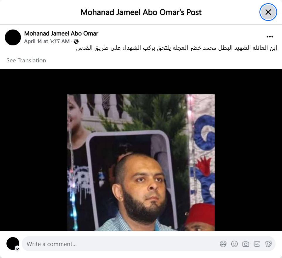 إبن العائلة الشهيد البطل محمد خضر العجلة يلتحق بركب الشهداء على طريق القدس