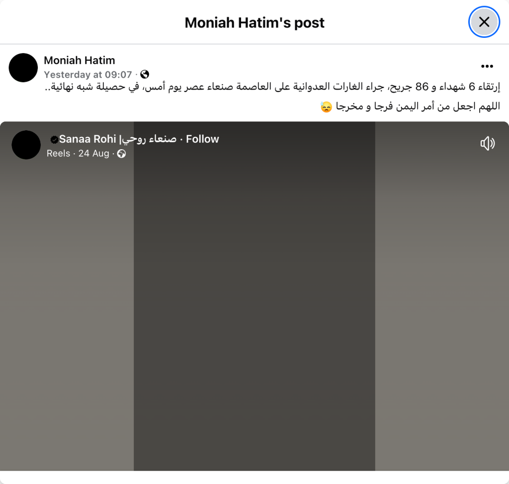 Six people were killed and 86 others wounded in the aggression's airstrikes on the capital, Sana'a, yesterday afternoon, according to a near-final toll. May God grant relief and a way out for Yemen.