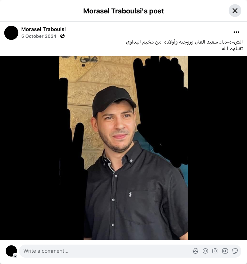 The martyr Saeed Al-Ali, his wife and children from Al-Badawi camp, may God accept them.