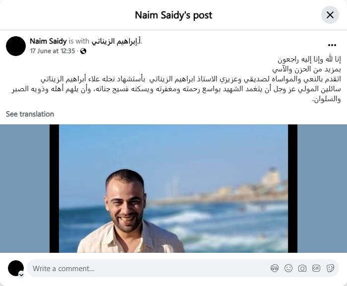 اتقدم بالنعي والمواساه لصديقي وعزيزي الاستاذ ابراهيم الزيناتي بأستشهاد نجله علاء أبراهيم الزيناتي