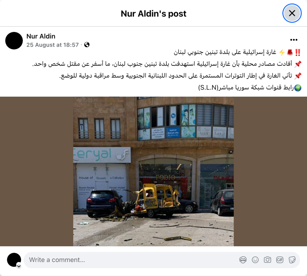 Archive URL: https://airwars.org/source/www-facebook-com-nur-aldin-pfbid024cj4vunn2x2bvkkretch6eesgttoftksmwgtgdupspkqnnrkuuq95xkr7uqocp2bl-2025-08-25-155700/