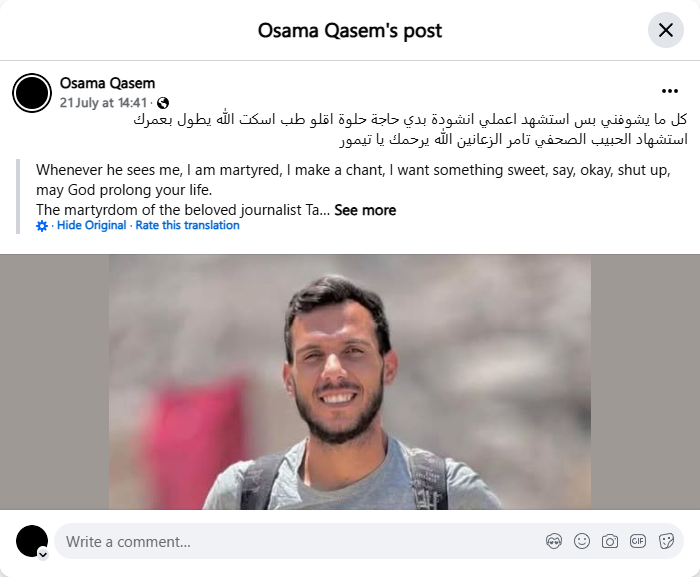 استشهاد الحبيب الصحفي تامر الزعانين الله يرحمك يا تيمور