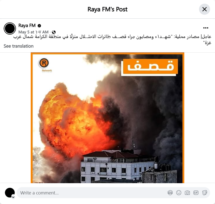 Urgent | Local sources: "One person was killed and others were injured as a result of the occupation forces' bombing of a house in the Al-Karama area, northwest of Gaza."