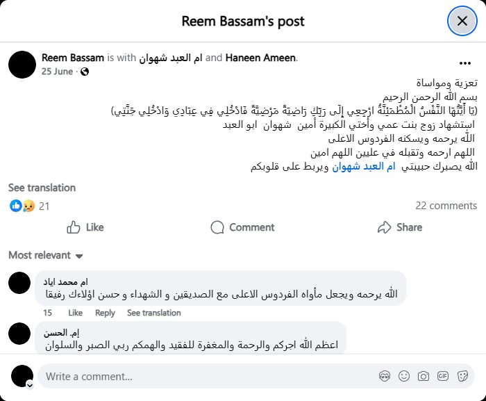May God give you patience, my beloved Umm Al-Abd Shahwan, and comfort your hearts.