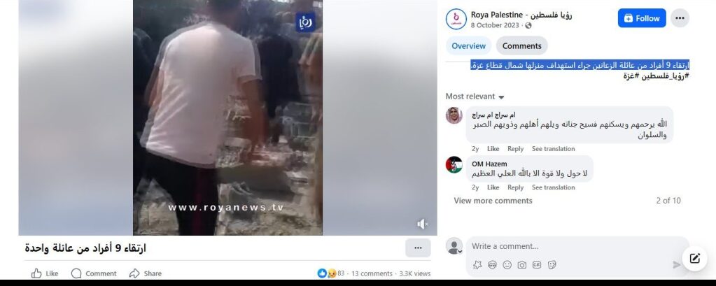 ارتقاء 9 أفراد من عائلة الزعانين جراء استهداف منزلها شمال قطاع غزة.