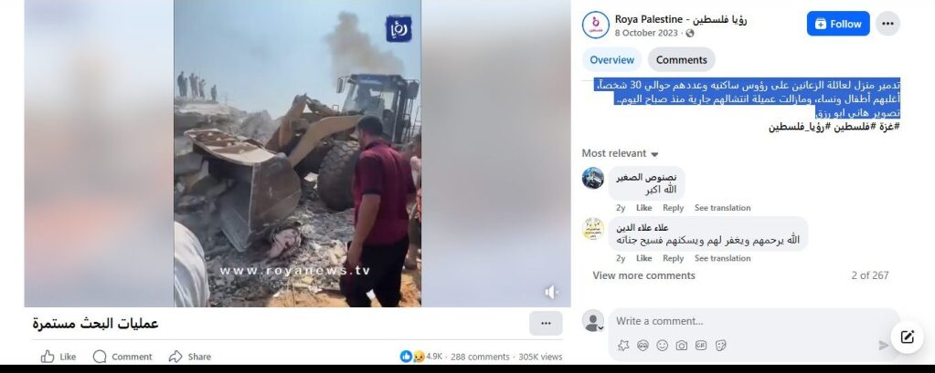 تدمير منزل لعائلة الزعانين على رؤوس ساكنيه وعددهم حوالي 30 شخصاً، أغلبهم أطفال ونساء، ومازالت عميلة انتشالهم جارية منذ صباح اليوم..