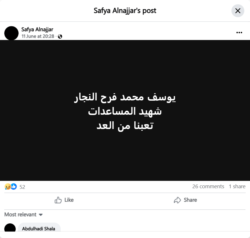Youssef Mohammed Farah Al-Najjar, the martyr of aid, we are tired of the enemy Youssef Mohammed Farah Al-Najjar, the martyr of aid, we are tired of the enemy