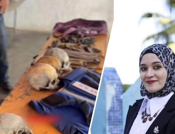 This is #Marwa_Muslim, the brave journalist, who remained buried under the rubble, and when they pulled her out today, they found nothing but a skull and part of her bones. They turned her into a pile of burnt bones.