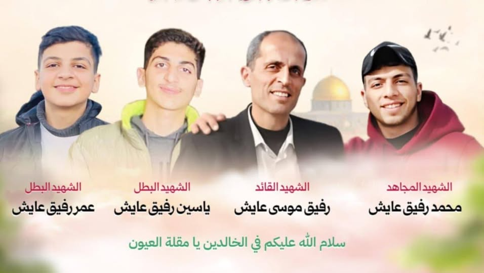 Palestine lost today one of the men of military industry and one of the companions of Abu Khaled, the leader Dr. Rafiq Musa Ayesh. He was martyred today along with his wife and three children in a treacherous Zionist bombing of their home. His son, Muhammad Rafiq Ayesh, was also a man of the resistance. A life of honor and a death of greatness.
