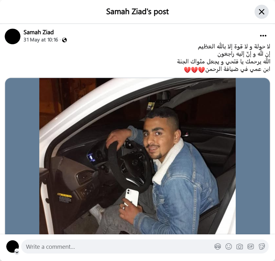 There is no power nor strength save with Allah, the Almighty. To Allah we belong and to Him we shall return. May Allah have mercy on you, Fathi, and make your abode in Paradise. My cousin is a guest of the Most Gracious. The young man from the family, Fathi Wael Noman Al-Nahhal, was martyred by the bullets of the Israeli occupation forces at the Al-Alam roundabout in the outskirts of Rafah city. To Allah we belong and to Him we shall return. #Al-Nahhal_Family_Diwan
