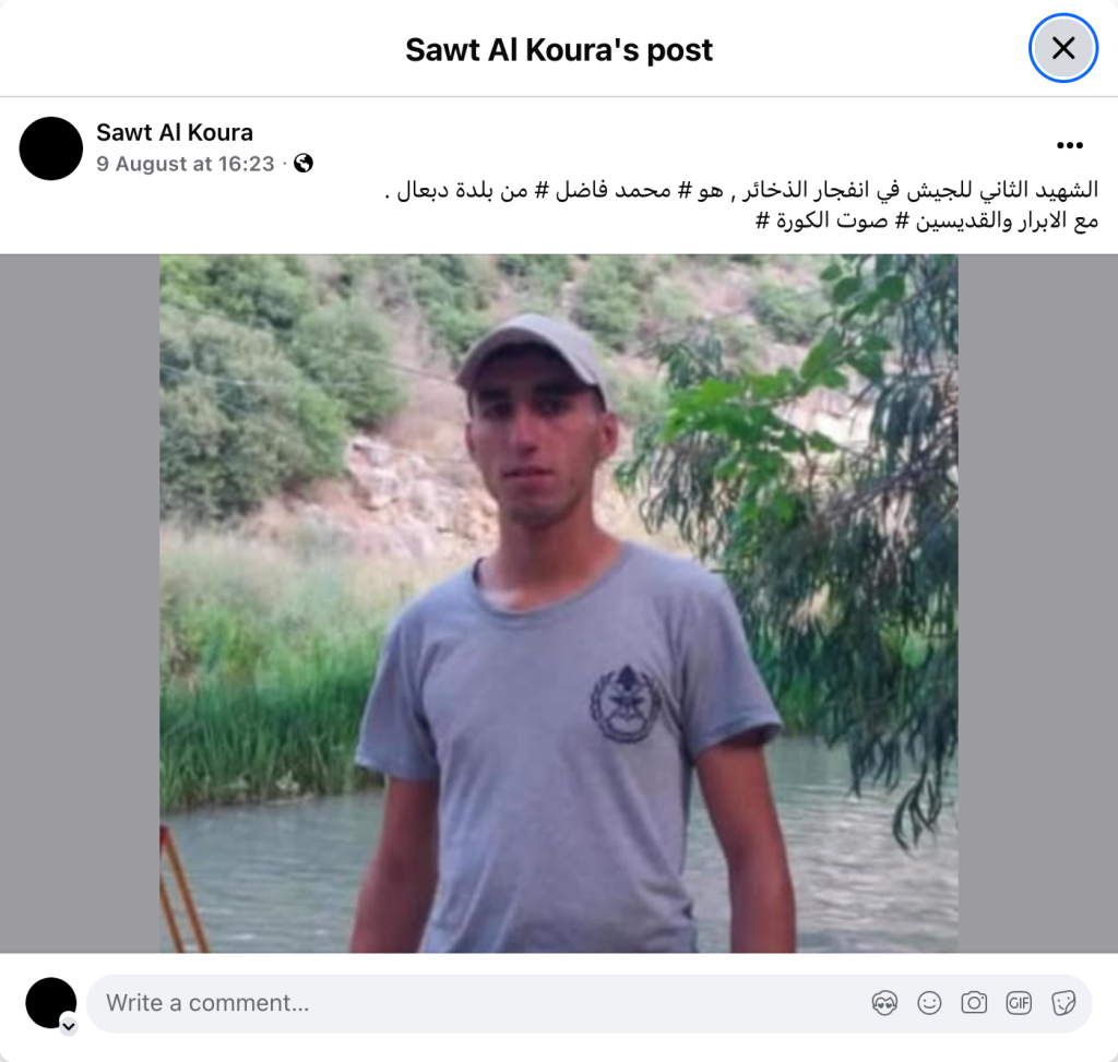الشهيد الثاني للجيش في انفجار الذخائر , هو # محمد فاضل # من بلدة دبعال .