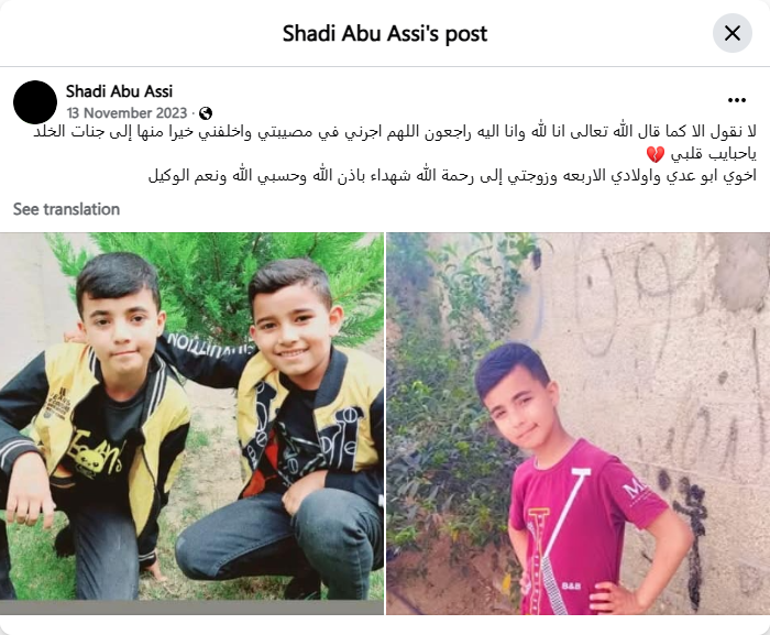 My brother Abu Adi, my four children, and my wife have passed away as martyrs, God willing. God is sufficient for me, and He is the best Disposer of affairs.