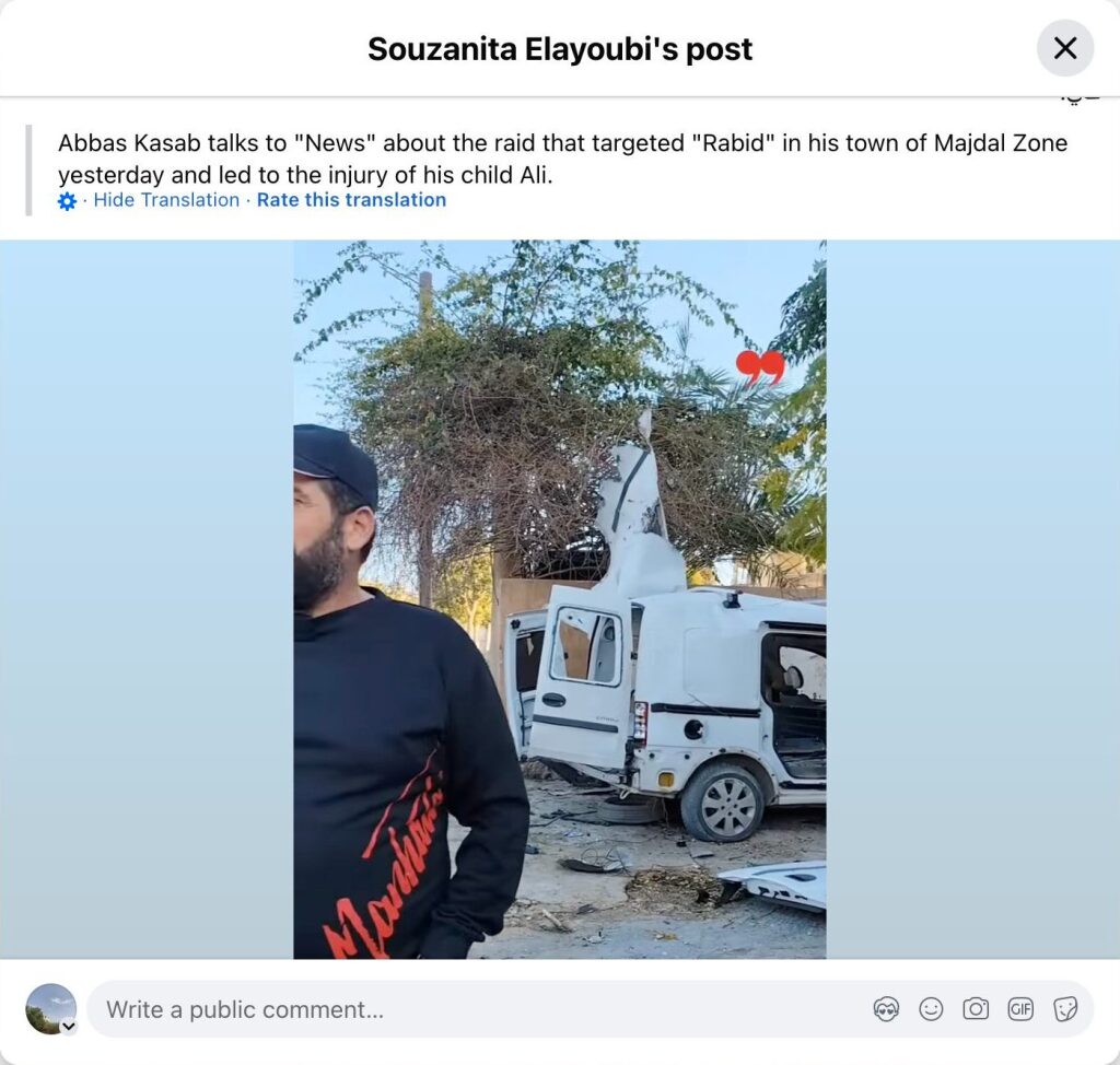 Abbas Kasab speaks to Al-Akhbar about the airstrike that targeted a "Rabid" vehicle in his hometown of Majdal Zone yesterday, which injured his child, Ali.