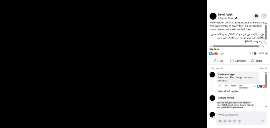إطلاق نار كثيف من قبل قوات الاحتلال على الالاف من المواطنين عند مركز توزيع المساعدات في محور نتساريم وسط القطاع