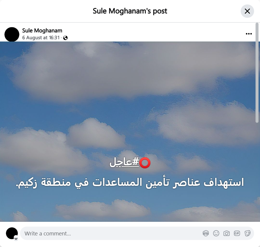 Archive URL: https://airwars.org/source/www-facebook-com-sule-moghanam-pfbid0weyxpjqnaaoaooctmjc1pbfy9qseqj2bfz5yjcgtbkwrksoaswbualhkq8q6kgxjl-2025-08-06-143100/