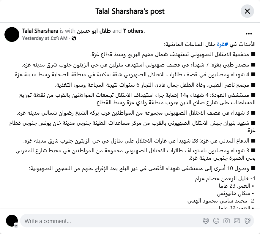 ■ A martyr and others were injured when the Zionist occupation targeted a vehicle carrying aid workers on Salah al-Din Street, near Ramzon Deir al-Balah, in the central Gaza Strip.