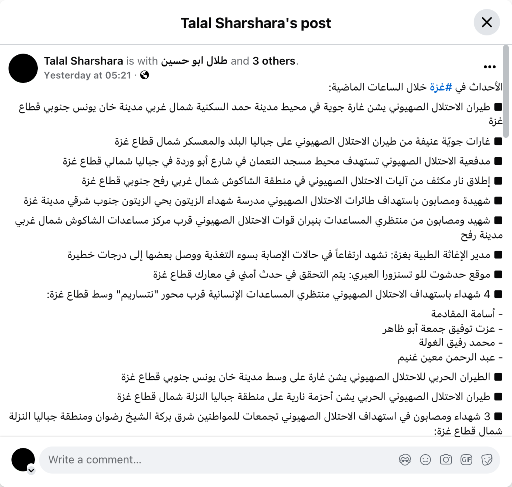 ■ Injuries as a result of the Zionist occupation bombing a tent sheltering displaced people next to the metro in the Al-Rimal neighborhood, west of Gaza City.