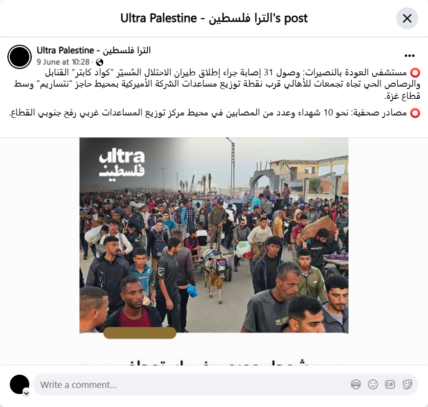 مستشفى العودة بالنصيرات: وصول 31 إصابة جراء إطلاق طيران الاحتلال المُسيّر "كواد كابتر" القنابل والرصاص الحي تجاه تجمعات للأهالي قرب نقطة توزيع مساعدات الشركة الأميركية بمحيط حاجز "نتساريم" وسط قطاع غزة. مصادر صحفية: نحو 10 شهداء وعدد من المصابين في محيط مركز توزيع المساعدات غربي رفح جنوبي القطاع.